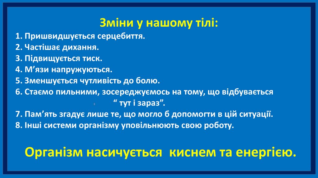 Зміни у нашому тілі:1. Пришвидшується серцебиття.
