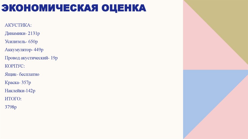ЭКОНОМИЧЕСКАЯ ОЦЕНКААКУСТИКА: