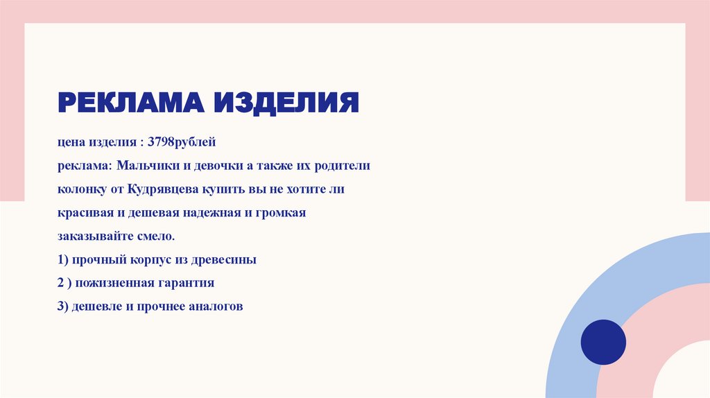 РЕКЛАМА ИЗДЕЛИЯцена изделия : 3798рублей