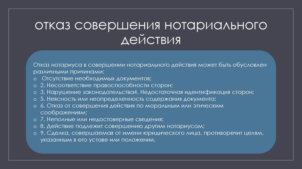 Отказ совершения нотариального действия