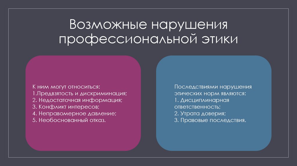 6. Возможные нарушения профессиональной этики