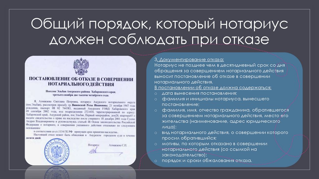 8. Общий порядок, который нотариус должен соблюдать при отказе