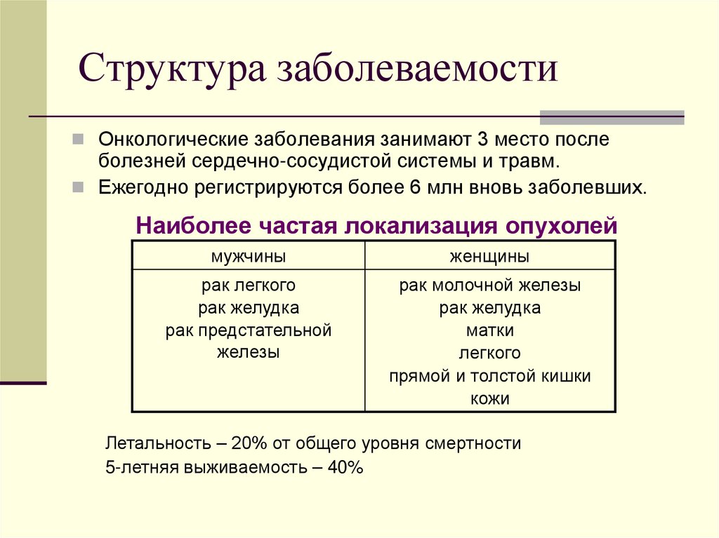 Онкологические заболевания занимают 3 место послеболезней сердечно-сосудистой системы и травм.