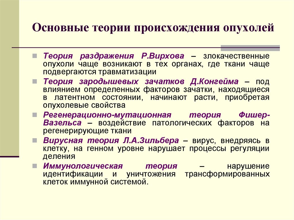 Теория раздражения Р.Вирхова – злокачественныеопухоли чаще возникают в тех органах, где ткани чаще