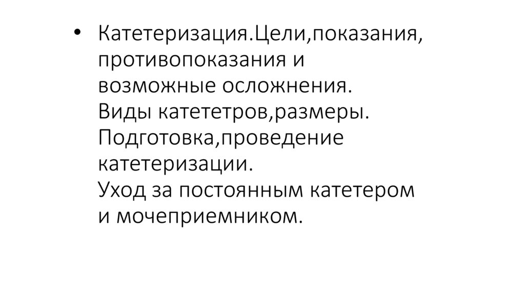 • Катетеризация.Цели,показания,противопоказания и