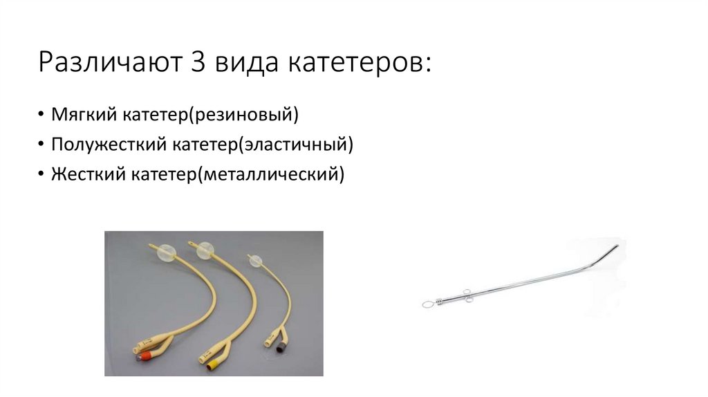• Мягкий катетер(резиновый)• Полужесткий катетер(эластичный)