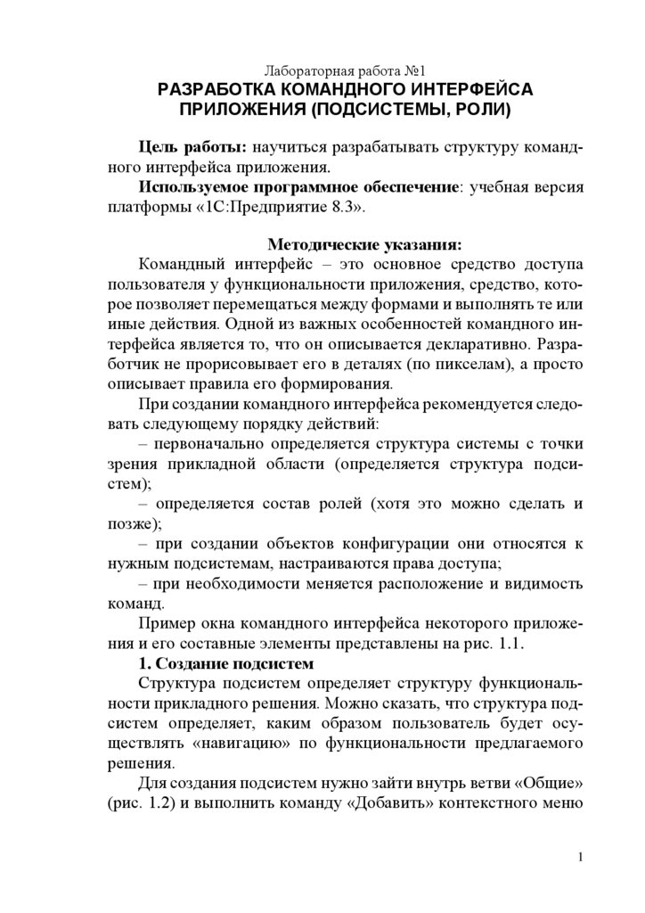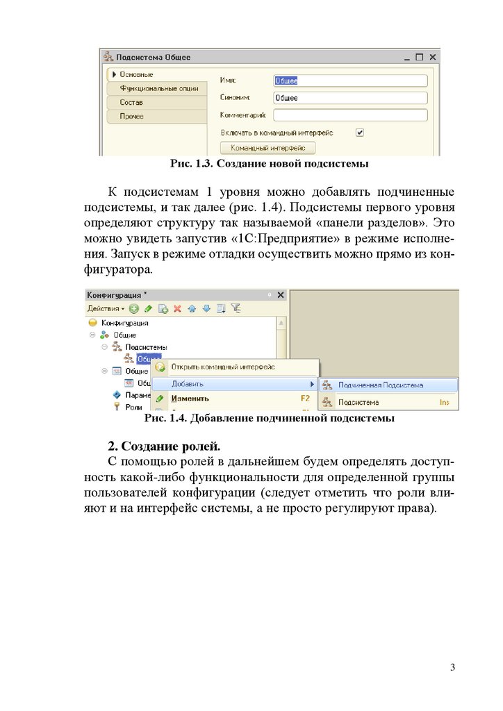 Обратите внимание на флаг «Включать в командный интерфейс» (рис. 1.3). Подсистемы со снятым флагом не влияют на