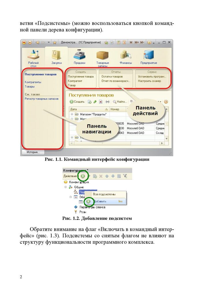 ветви «Подсистемы» (можно воспользоваться кнопкой командной панели дерева конфигурации).Рис. 1.1. Командный интерфейс конфигурации