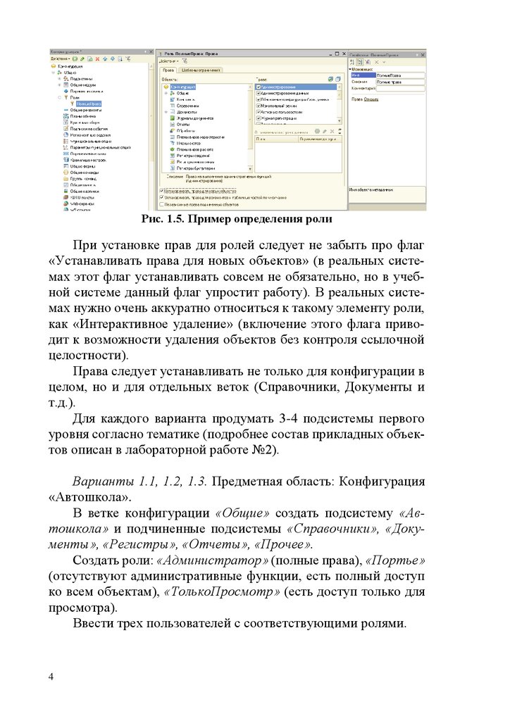 пользователей конфигурации (следует отметить что роли влияют и на интерфейс системы, а не просто регулируют права).