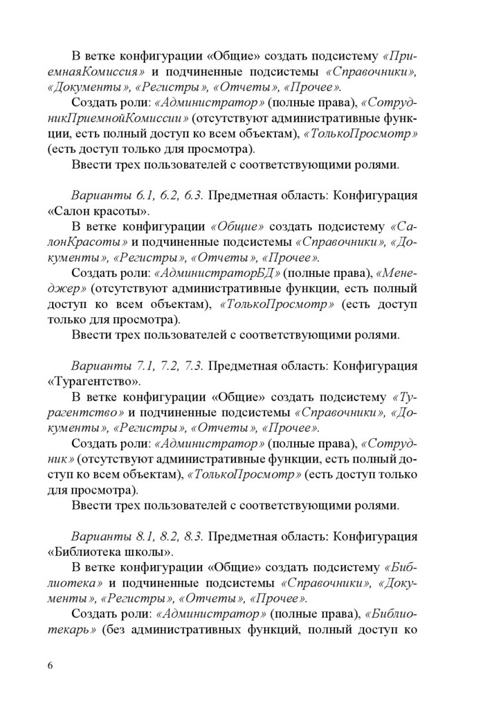 Варианты 6.1, 6.2, 6.3. Предметная область: Конфигурация