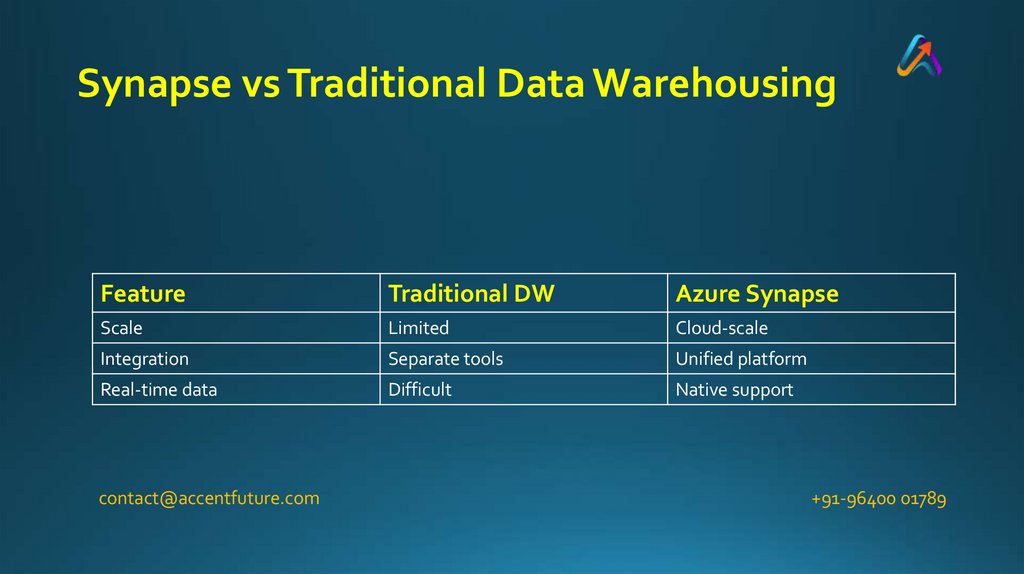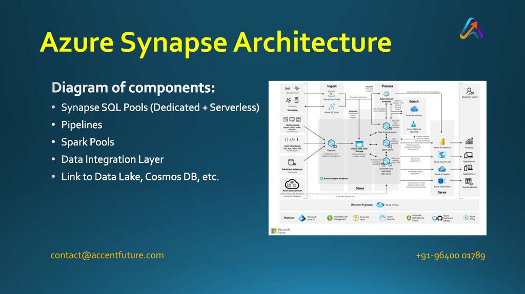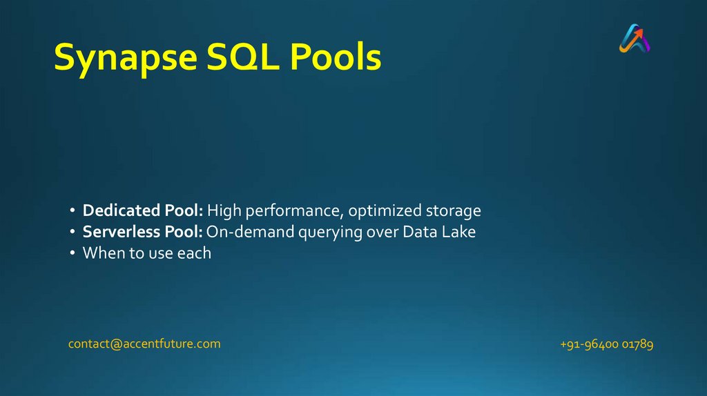 • Dedicated Pool: High performance, optimized storage• Serverless Pool: On-demand querying over Data Lake