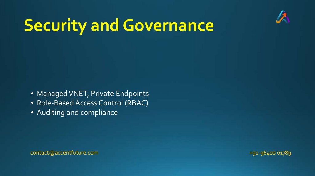 • Managed VNET, Private Endpoints• Role-Based Access Control (RBAC)