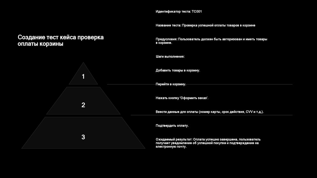 Идентификатор теста: TC001Название теста: Проверка успешной оплаты товаров в корзине