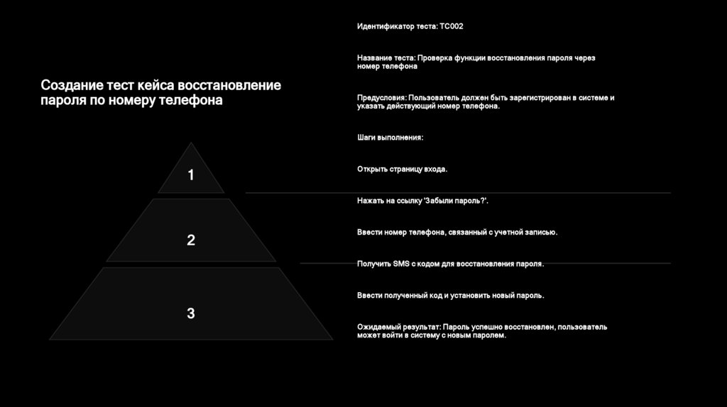 Идентификатор теста: TC002Название теста: Проверка функции восстановления пароля через