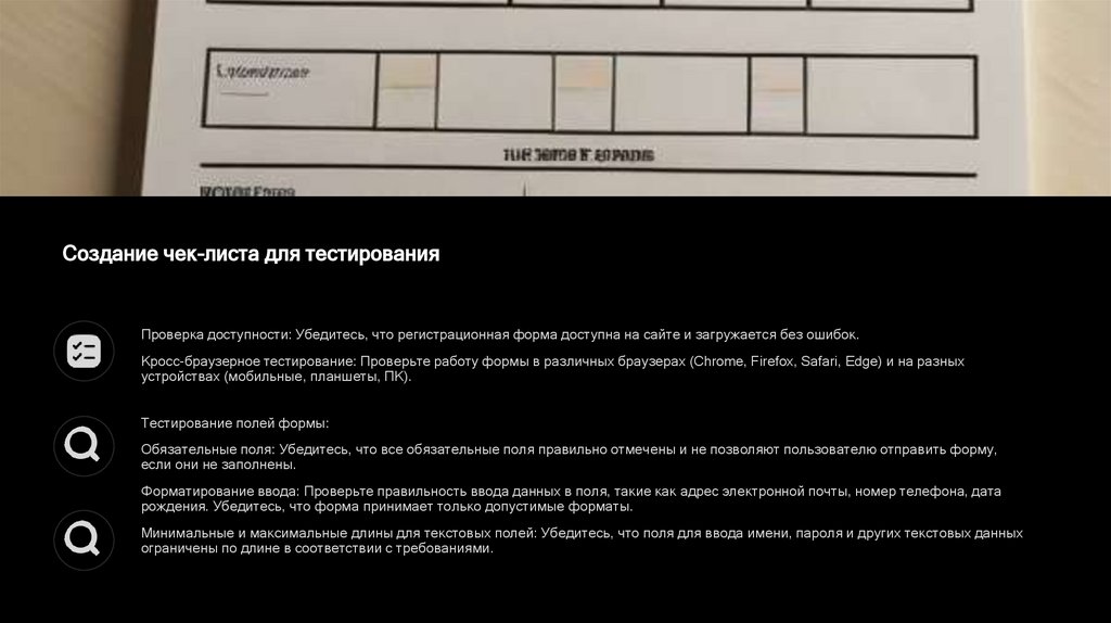 Создание чек-листа для тестированияПроверка доступности: Убедитесь, что регистрационная форма доступна на сайте и загружается без ошибок.