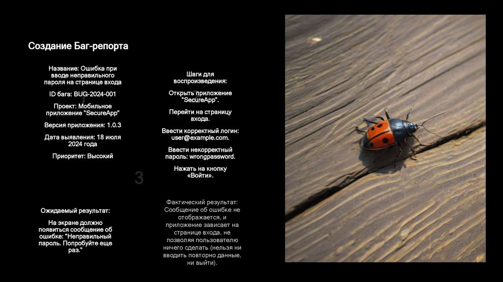 Создание Баг-репортаНазвание: Ошибка при