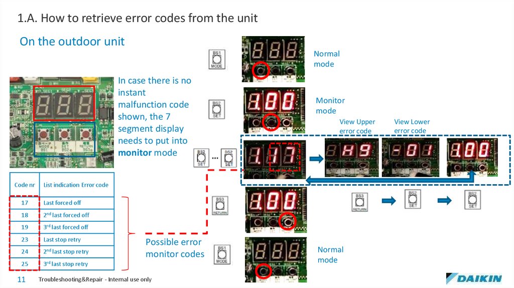 1.A. How to retrieve error codes from the unitOn the outdoor unit