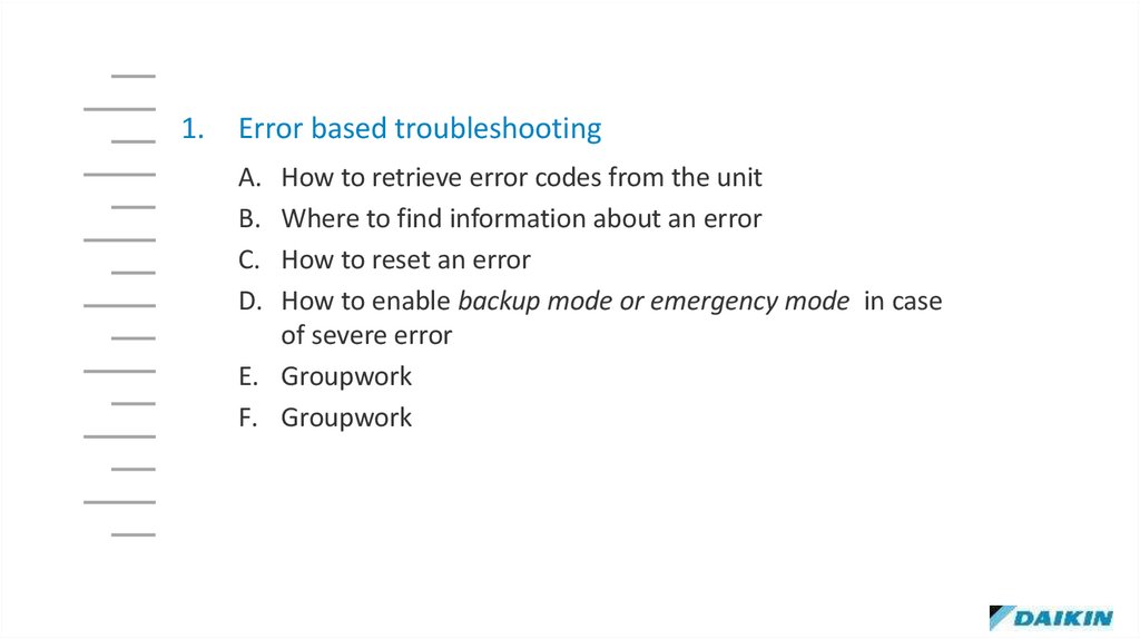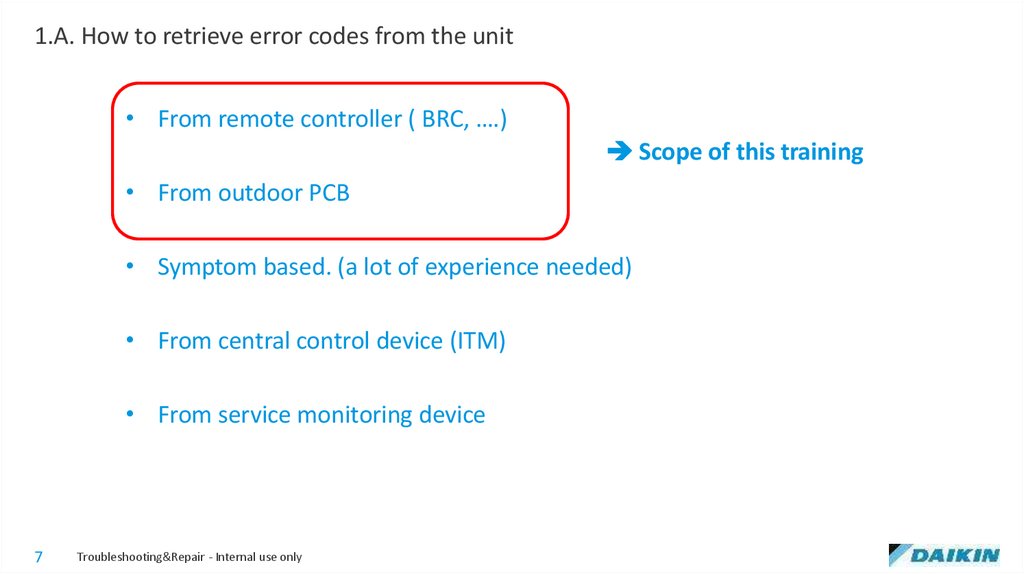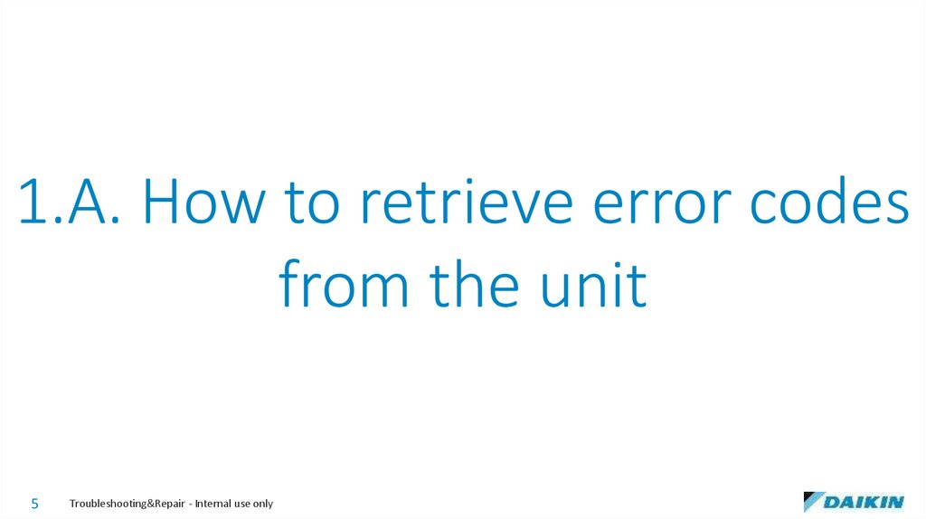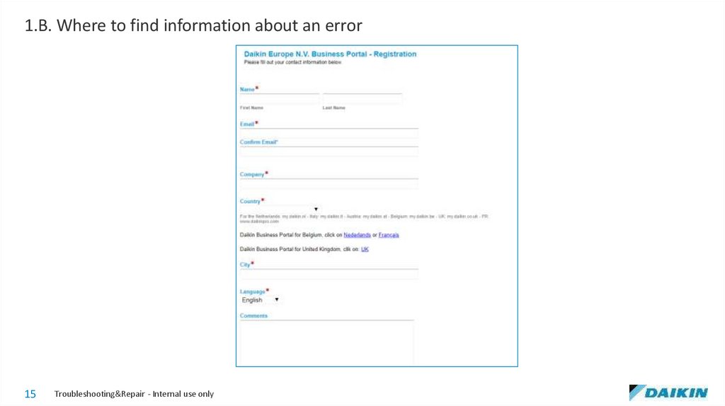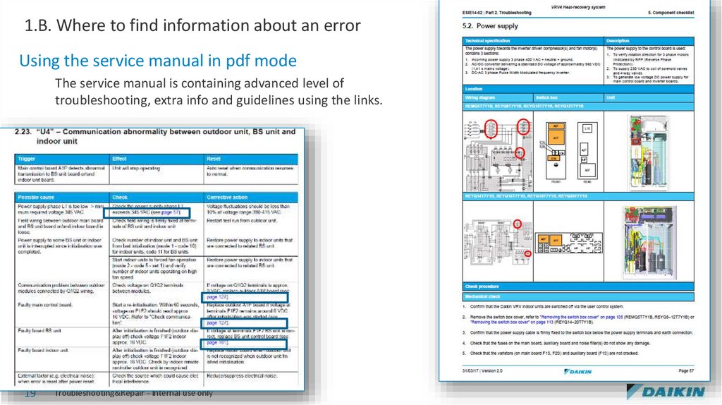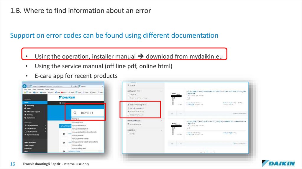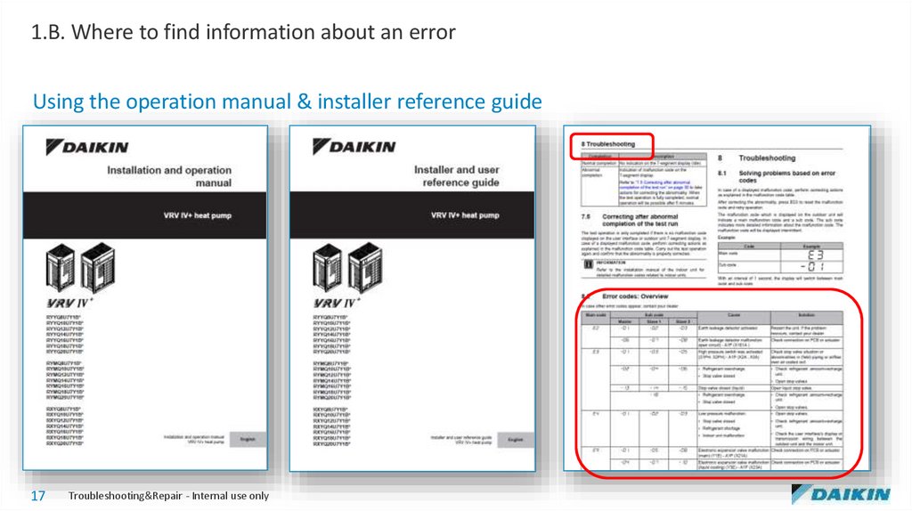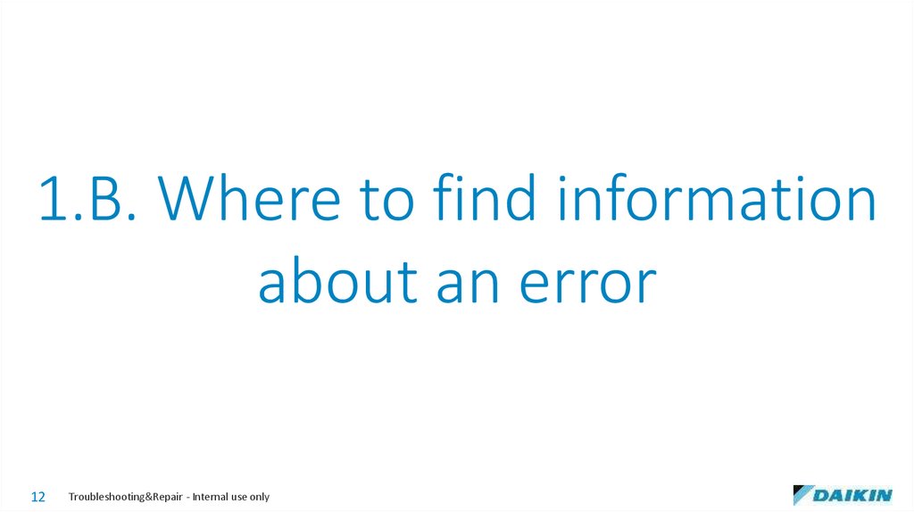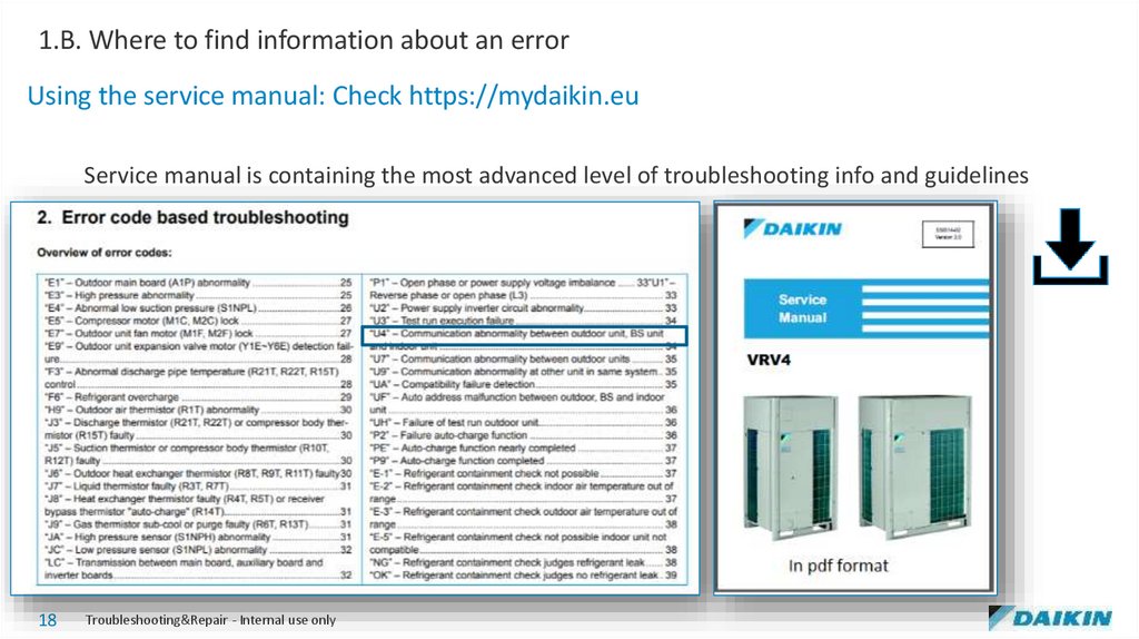 1.B. Where to find information about an errorUsing the service manual: Check https://mydaikin.eu