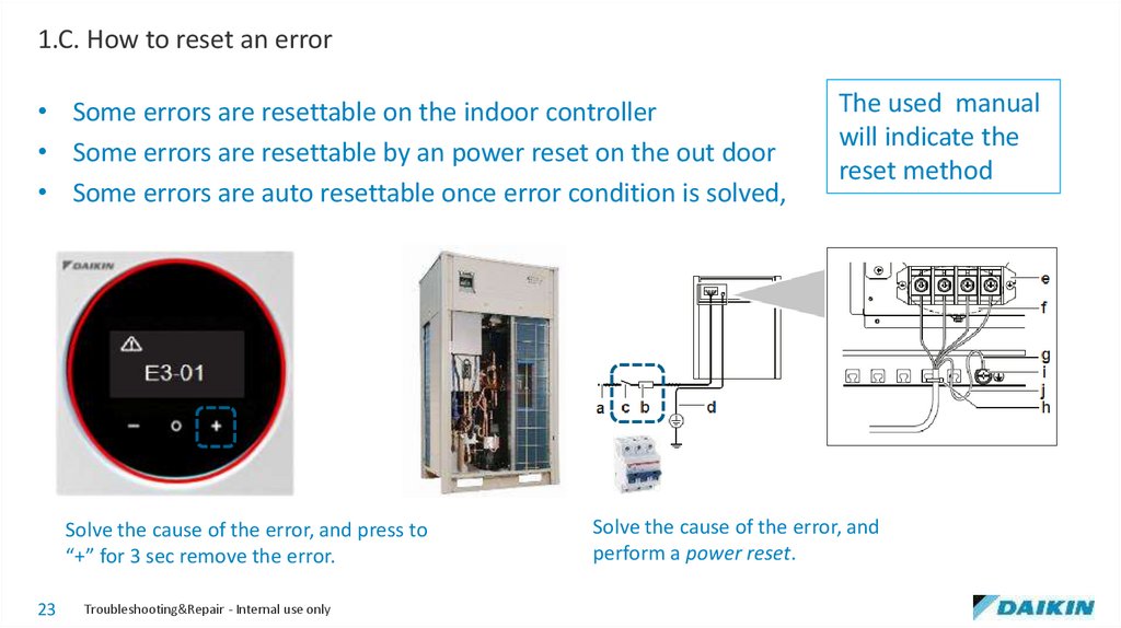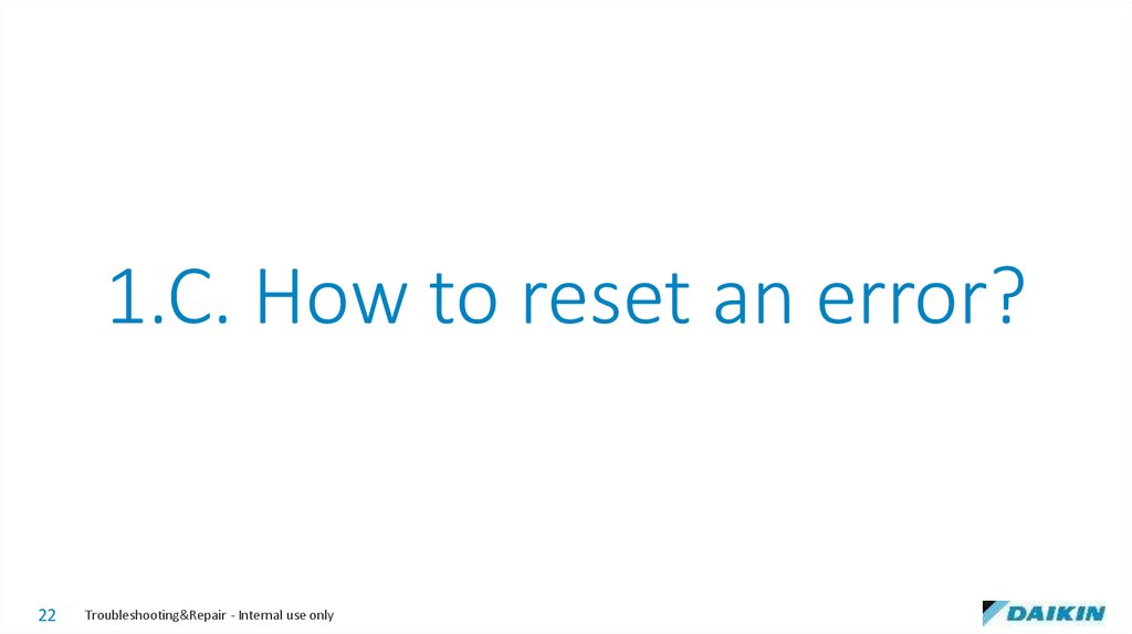 1.C. How to reset an error• Some errors are resettable on the indoor controller