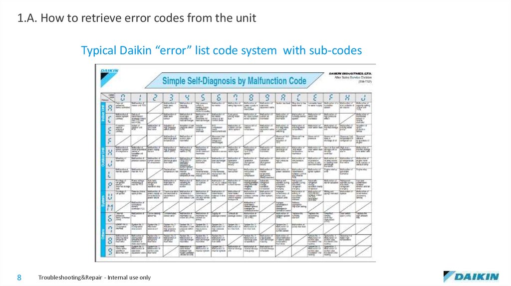 1.A. How to retrieve error codes from the unitTypical Daikin “error” list code system with sub-codes