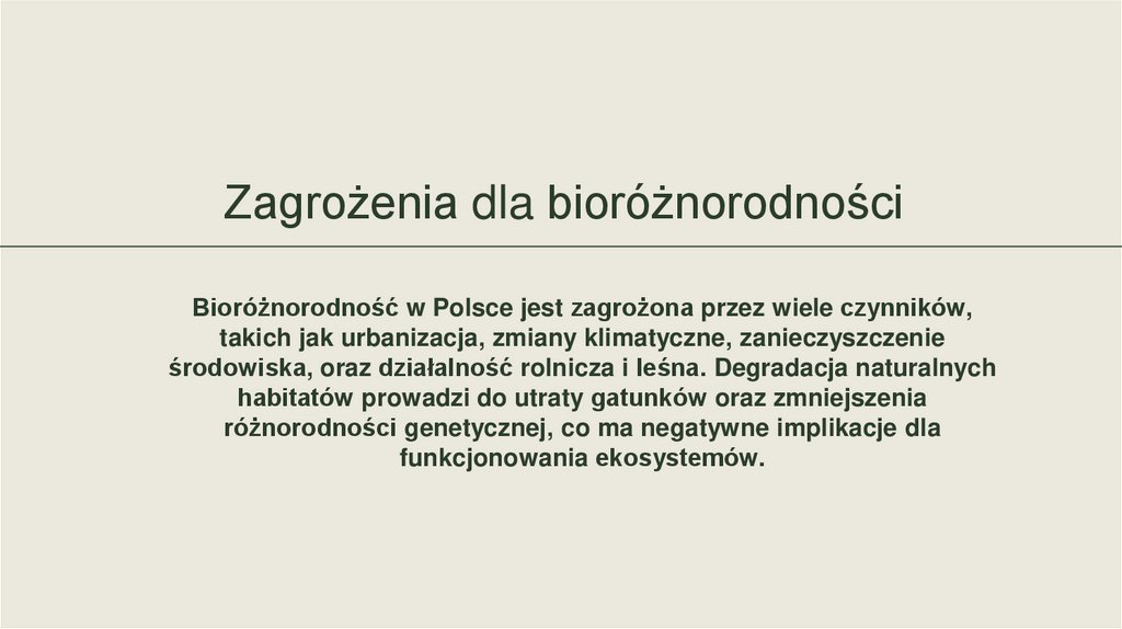 habitatów prowadzi do utraty gatunków oraz zmniejszenia