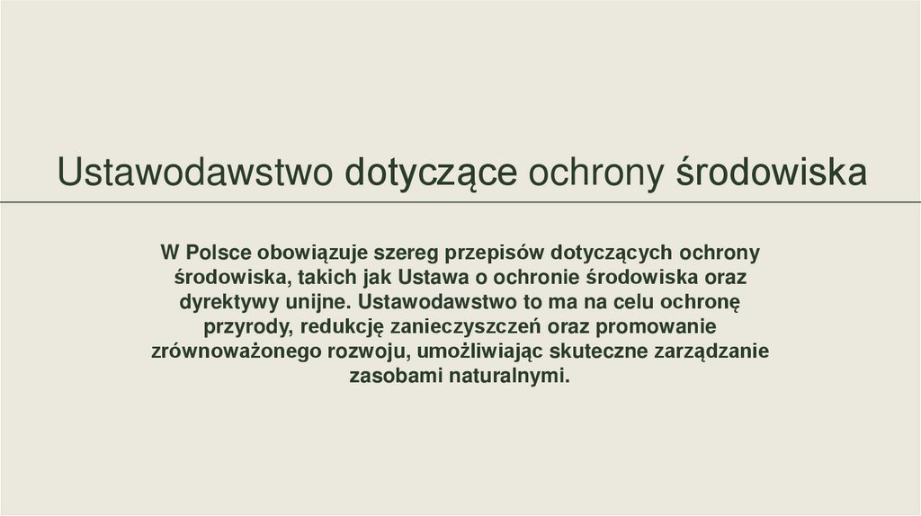 8. Ustawodawstwo dotyczące ochrony środowiska