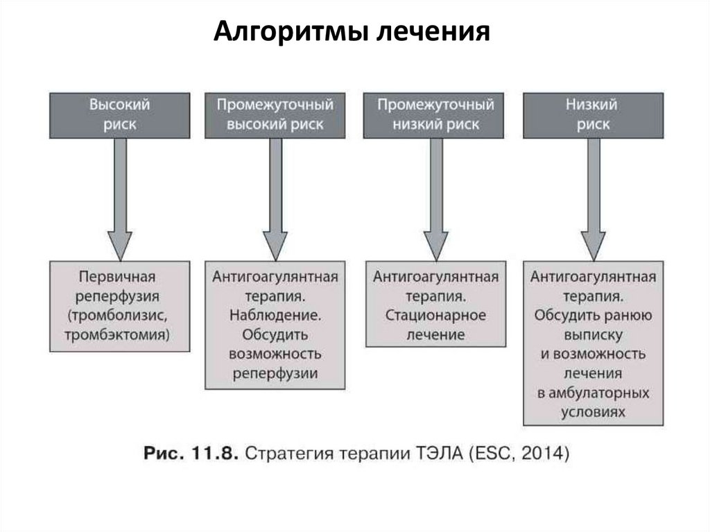 • ТЭЛА низкого риска - если ТЭЛА не сопровождалась шоком
