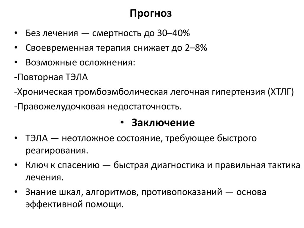 • ТЭЛА — неотложное состояние, требующее быстрого