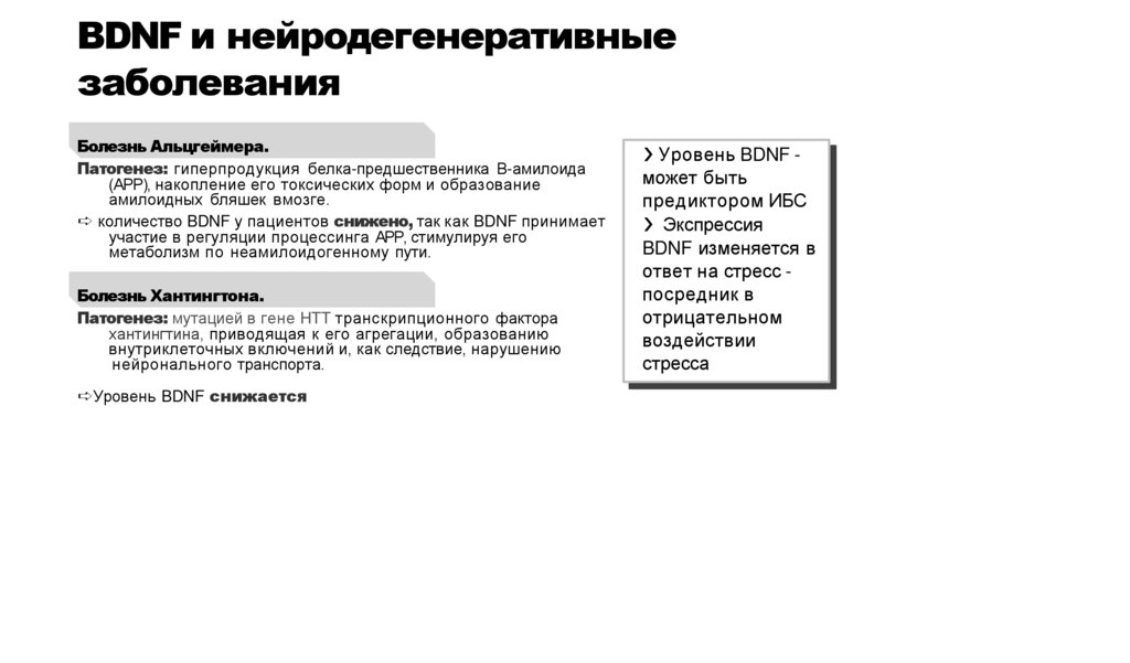 ➪ количество BDNF у пациентов снижено, так как BDNF принимает