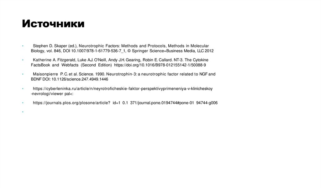 Maisonpierre P. C. et al. Science. 1990. Neurotrophin-3: a neurotrophic factor related to NGF and
