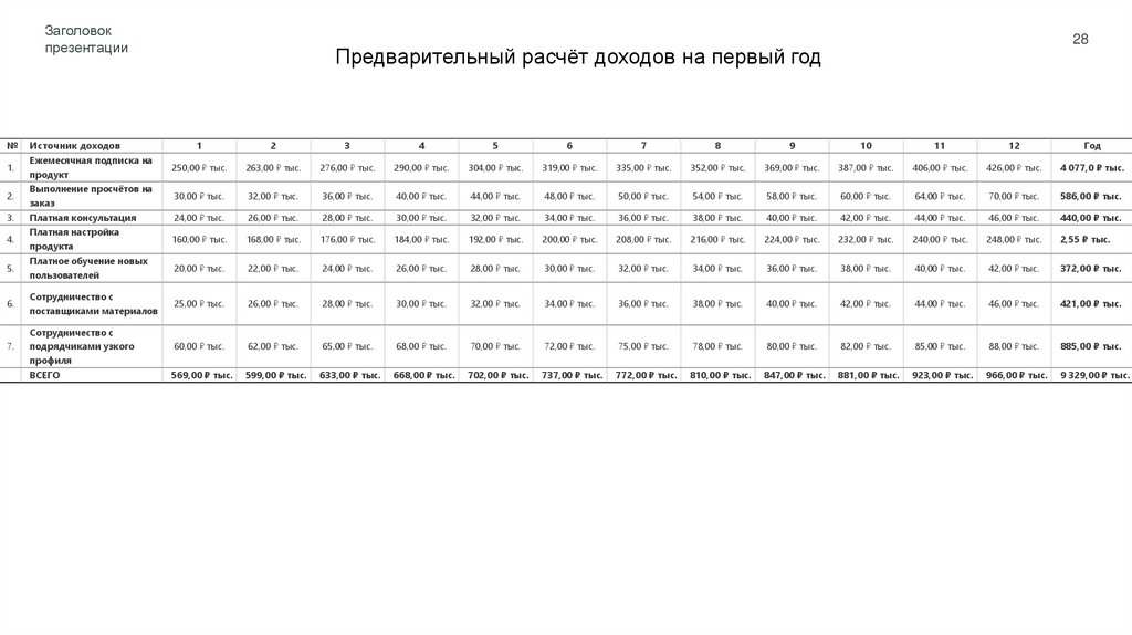Предварительный укрупнённый расчёт доходов проекта