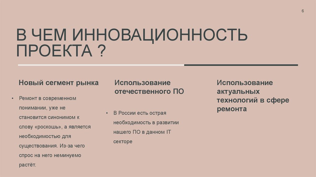 6. В чем инновационность проекта ?