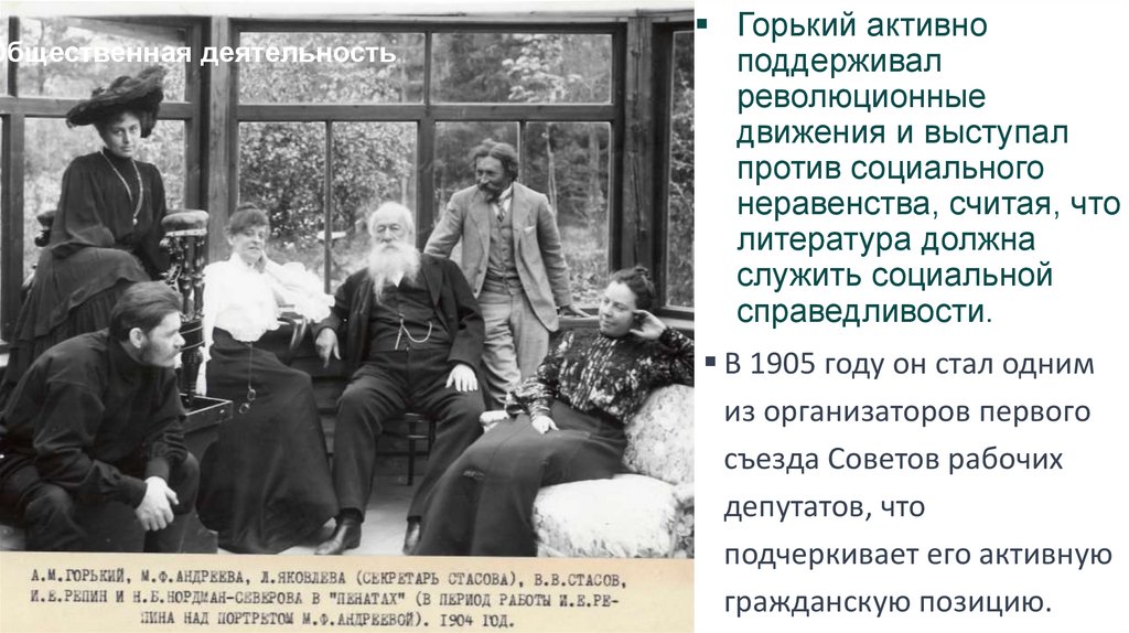4. Горький активно поддерживал революционные движения и выступал против социального неравенства, считая, что литература должна