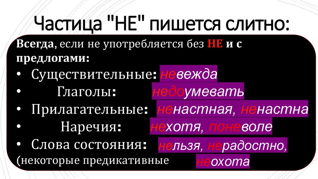 Правописание НЕ счастями речи