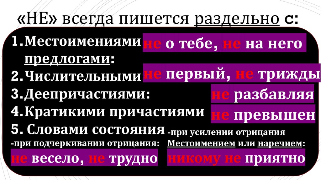 Правописание НЕ с частями речи