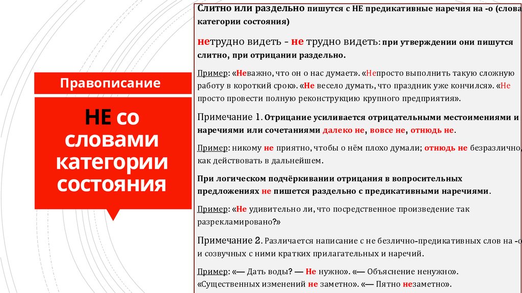 Слитно или раздельно пишутся с НЕ предикативные наречия на -о (словакатегории состояния)