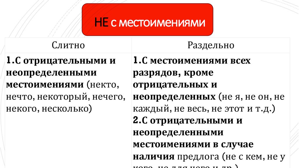 местоимениями (некто, отрицательных и