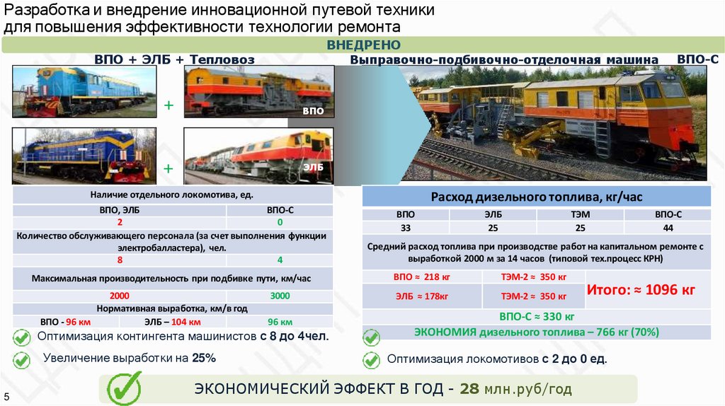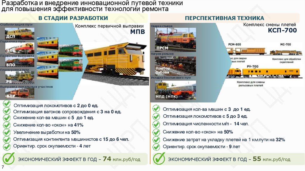 Повышение эффективности технологии ремонтов железнодорожного пути за счет обновления парка путевой техники