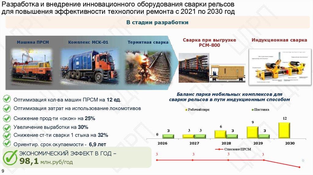 Разработка и внедрение инновационного оборудования сварки рельсовдля повышения эффективности технологии ремонта с 2021 по 2030 год
