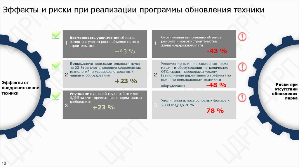 Эффекты и риски при реализации программы обновления техникиВозможность увеличения объемов
