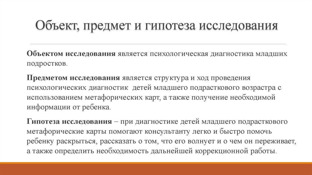 Гипотеза исследования – при диагностике детей младшего подрасткового