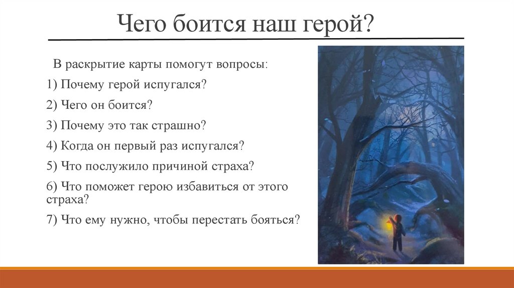 В раскрытие карты помогут вопросы:1) Почему герой испугался?