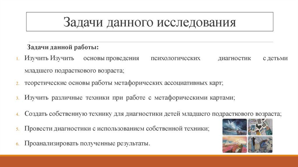 4. Задачи данного исследования