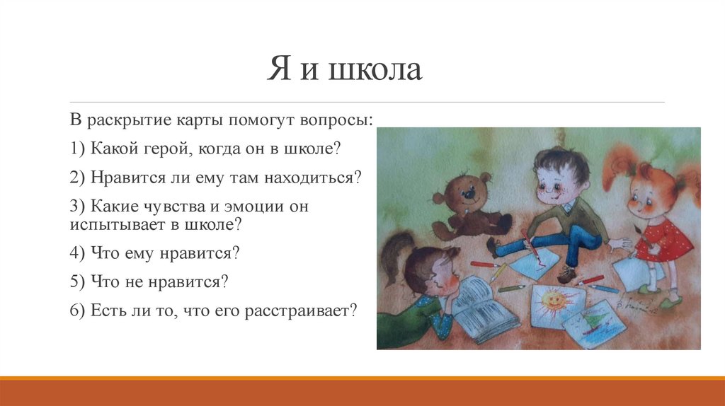 В раскрытие карты помогут вопросы:1) Какой герой, когда он в школе?