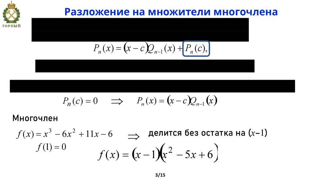 Разложение на множители многочленаМногочлен Pn ( x), n > 0 разделим на двучлен x - c ,