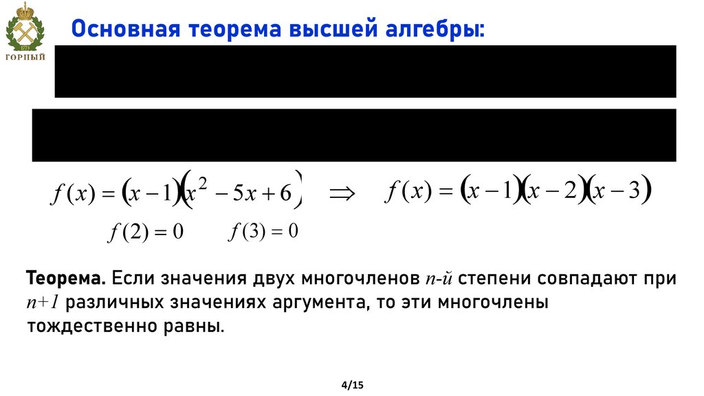 Основная теорема высшей алгебры:Всякий многочлен Pn (x) степени n > 0 имеет, по крайней мере,