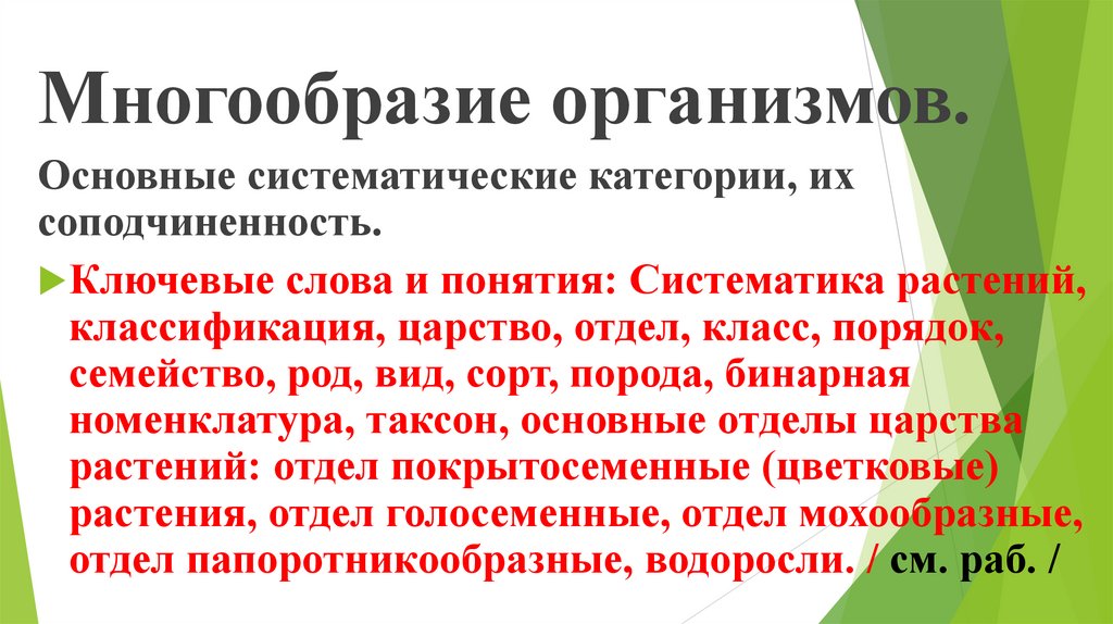 29. Установите последовательность расположения таксономических названий, начиная с наибольшего