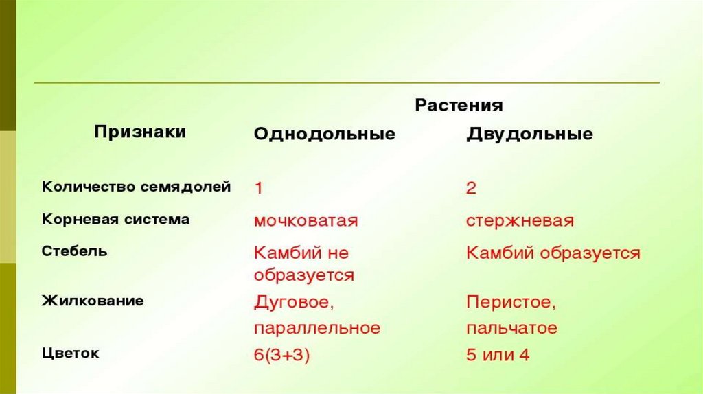 знаний. н/р о корневой системе, о жилкование листьев и о