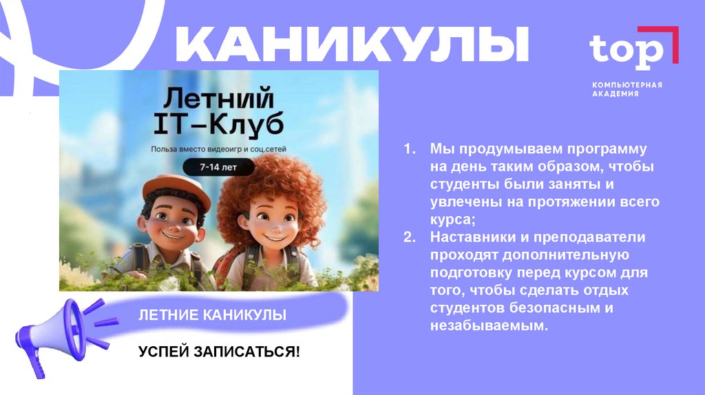 ЛЕТНИЕ КАНИКУЛЫУСПЕЙ ЗАПИСАТЬСЯ!