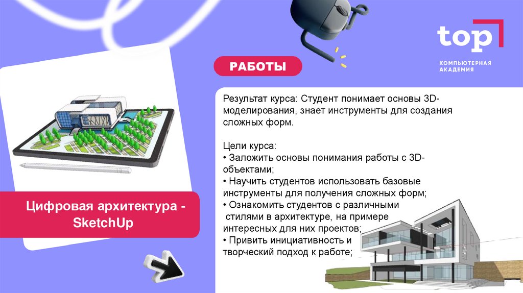 Результат курса: Студент понимает основы 3Dмоделирования, знает инструменты для созданиясложных форм.
